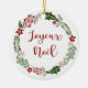 Grün-und rote Weihnachtskranz-Design mit den Worten Frohe Weihnachten auf Französisch: Joyeux Noël