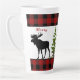 Cette tasse en latte de style rustique présente un design unique d'une silhouette d'orignal sur un arrière - plan en plaid de buffle rouge et noir. J'ai ajouté un couvert de sapins pour donner à cette tasse un aspect hivernal boisé. Cette tasse en latte serait un cadeau de Noël réfléchi