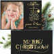 Carte photo de vacances étonnant avec un arrière - plan noir et texte en or qui lit Joyeux Noël et Bonne Année devant, Joyeux Noël derrière. Le front a un arbre de vacances en or et un flocon de neige et une zone vous pouvez ajouter votre propre photo et nom de famille! i>Photographie © Storytree Studios, Stanford, CA
