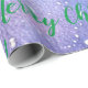 Joyeux Noël style typographie verte, avec un arbre de Noël enneigé avec une étoile brillante sur les lumières du dessus et ciel bleu et violet et chute de neige arrière - plan répéter le design motif pour votre joie festive.