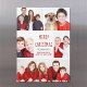 Cette mignonne carte magnétique Joyeux Noël branchée dispose d'une mise en page moderne de 5 photos de famille sur un arrière - plan blanc avec typographie rouge. Cette belle carte de vacances photo magnétique dispose de votre propre collage photographique entourant votre message et nom de famille en vert.