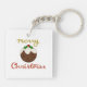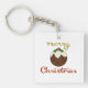 'Joyeux Noël' en fausse couleur or et écriture rouge avec illustration d'un pudding de Noël au centre saint.