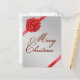 Ruban rouge avec arc sur un arrière - plan gris clair/blanc avec lettres "Joyeux Noël" en rouge avec bordure d'or.