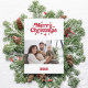 Un arrière - plan blanc, un texte rouge. Texte et photo sur le devant. Votre texte et vos noms à l'arrière. Joyeux Noël est écrit avec une police de style rétro.