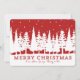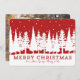 Joyeux Noël nom personnalisable et carte photo en rouge rustique et blanc motif de forêt couvert de neige. Ajoutez votre texte personnalisé à cette carte pour créer une photo de Noël unique saluant cette période de fêtes pour les amis et la famille.
