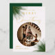 Diffusez la joie festive avec une carte de Noël photo personnalisée. Cette joyeuse carte de voeux de vacances comprend de l'espace pour une photo de famille, votre nom de famille et le design de verdure aquarelle. La véritable feuille d'or finit de cette carte festive qui en fait un super lux.