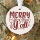 Joyeux Noël y’all Script Bourgogne et crème. Un script d'art avec un simple motif d'arbre de Noël.