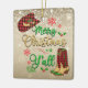 Habille ton Arbre de Noël et personnalise ce Comical "One of a Kind" Joyeux Noël Y'all Christmas Ornament ! Il comprend un Casquette Cowgirl et des Bottes Cowgirl en Rouge et Noir avec Parties scintillant verte et or Faits saillants sur un Arrière - plan de Noël Or et la Citation Festive...."Joyeux Noël à tous" ! Cet original "One of a Kind" Art Design a été créé par l'artiste Kerry Miller.