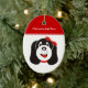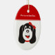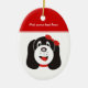 Joyeux ornement personnalisé de chiot idiot, avec un chiot idiot avec arc rouge sur la tête.