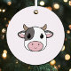 Un joyeux ornement de Noël personnalisable avec une jolie vache sur l'herbe sur un arrière - plan rose et un visage de vache sur le dos. Parfait pour votre décoration de Noël !