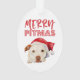 Illustration adorable d'aquarelle d'un chien américain blanc de terrier de pitbull avec un casquette rouge de père Noël. Il indique "joyeux Pitmas" au-dessus du chien. Perfectionnez la conception pour des amants et des propriétaires de pitbull de sorte qu'ils aient pu inclure leurs animaux familiers à l'esprit de vacances !