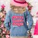 Vibrant rose joyeux et brillant Noël personnalisé nom veste denim