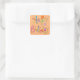 L'autocollant Joyeux Anniversaire présente de l'art éblouissant dessiné à la main à l'aide de ballons, d'un cupcake et d'un gâteau d'anniversaire pour aider à former les lettres. Le design est sur un arrière - plan orange.