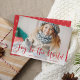 Créez vos cartes photos de vacances rapidement et facilement avec ce design simple et élégant. La carte présente votre photo horizontale ou paysagère préférée en fond saigné, avec "joie pour le monde" superposé dans des lettres de Noël rouge vif. Personnalisez avec vos noms et l'année en bas. Les cartes s'inversent à un motif d'arbre géométrique moderne en rouge et blanc assorti.