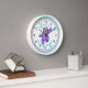 Joyeux moment, Princesse Bear se met à guérir dans la joie. Fanciful couronné princesse ours en peluche pour le plaisir cool. La fourrure violette brillante met en scène des accessoires dont une couronne dorée et une fleur délicate au poignet rose. Une couronne précieuse de bijoux sur princesse fille. Le nom et d'autres textes peuvent être personnalisés à l'aide du modèle fourni. Bordure d'aqua cool avec des chiffres en secondes. Nom et texte personnalisés. C'est le moment pour les filles. Ours en peluche de princesse violette qui danse. Design original par Anura Design Studio.