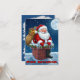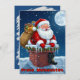 "Carte de Noël joyeuse avec le Père Noël qui sort joyeusement d'une cheminée sur le toit enneigé d'une maison. Entouré de nuit d’hiver, d’étoiles scintillantes et d’humeur festive, le dessin animé apporte une joie de Noël pure. Parfaitement adapté pour souhaiter un joyeux Noël à la famille, aux amis ou aux enfants et leur donner un sourire."