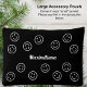 Visages heureux en silhouette blanche sur un arrière - plan noir GRAND sac accessoire. La couleur des faces heureuses, du texte et de l'arrière - plan peut être recolorée comme vous le souhaitez à l'aide de l'outil "modifier la conception" dans le modèle. Vient aussi en petit, s'il vous plaît aller ici pour d'autres options : https://www.zazzle.com/collections/pouches_cosmetic_or_toiletries_bags-119531158092049477?rf=238986706153284958 Différentes couleurs et designs disponibles.