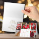 Die Weihnachtskarten mit mehreren Fotos tragen Ihre Namen und das Wort "Joyful" in schicker Schrift auf einem einzigartigen, weißen Gitterhintergrund auf der Vorderseite und Ihre Gruß und Personalisierung auf der Innenseite. Wählen Sie High Definition für beste Foto-Qualität.