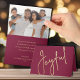 Das Wort Joyful in einem schicken goldenen Drehbuch auf einem Cranberry-Hintergrund auf der Vorderseite, diese gefalteten Weihnachtsgrüßkarten im Fest bieten Ihr Lieblings-Foto, persönlichen Gruß und Namen im Inneren. PASSENDE Artikel in unserer Sammlung.