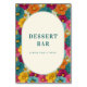 This vibrant wedding tabletop sign features a playful floral pattern with bright colors like deep pink, coral orange, mustard yellow, and teal blue. The design showcases stylized daisy-like flowers arranged in a repeating grid pattern, creating a lively border around an oval cream center. Bold, uppercase serif typography announces "DESSERT BAR" while smaller sans-serif text invites guests to "PLEASE TAKE A TREAT!" The cheerful and whimsical style evokes a joyful, welcoming atmosphere perfect for festive celebrations.