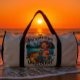 A happy girl jumps in the air, holding a fish. Her expression is filled with joy as she playfully interacts with her aquatic companion.