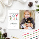 Dieses moderne und minimale Urlaubsfoto-Design zeichnet sich durch ein gerahmtes "JOYFUL"-Design in serifenlosen Schriftzeichen aus, das in festlichen saisonalen Farben gestaltet ist. Personalisieren Sie mit Ihrem Lieblingsportrait Foto, Ihrer Familie und dem Jahr. Das koordinierende Muster der bunten, horizontalen Streifen zieht die Rückseite der Karte hoch. Die Farben sind: Merlot Rot, Aqua Blau, Urlaubrot, Oliven Grün, Rose Gold, Jäger Grün, und Akzente von dunkelgrau.
