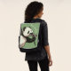 Ein Boldface Rucksack mit einem glücklichen Panda, voll von den Freuden des Frühlings, riecht nach einem Zweig von rosafarbenen Kirschblüten Blume, mit bearbeitbarem Drehbuch ganz oben bereit für Sie, um Ihre eigene persönliche Touch für ein vollkommenes Geschenk. Ein Frühlingsthemenbild, das das ganze Jahr über für begeisterte Fans der kuscheligen, schwarz-weißen Bären funktioniert. 'Anpassen', um den grünen Hintergrund zu Ihrer bevorzugten Farbe zu ändern. Textänderungen werden vorn und hinten reflektiert.