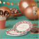 This wedding plate features a charming design with a repeating pattern of red cherries and dark green leaves on a cream background, creating a vibrant and elegant look. The central circle highlights customizable names and date in a mix of uppercase serif and script fonts, framed by a muted red outline that adds sophistication. The semi-realistic representation style blends traditional botanical elements with modern graphic design, evoking joy and celebration. Perfect for adding a festive touch to your wedding reception, this plate combines cheerful motifs with a classic aesthetic, making it an ideal choice for a memorable event.