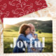 Trendy Joyful Red and White Wirbel Foto Weihnachtsgrüße Karte.