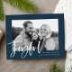 Wünschen Sie Freunden und Familie einen angenehmen Urlaub mit unseren Joyful Script Foto Postkarten. Die moderne Ferienpostkarte enthält das Wort "Joyful" in einem weißen, handgeschriebenen Skript-Overlay mit Ihrem Lieblings-Foto, das in der Marine gerahmt ist. Personalisieren Sie die Postkarte, indem Sie Ihre Namen, Rücksendeadresse und einen persönlichen Gruß hinzufügen.