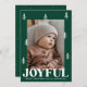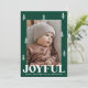 Feiern Sie die Saison mit dieser Weihnachtskarte aus festlichem Foto mit Ihrem vertikalen Foto gerahmt von weißen handgezeichnet Kiefern auf einem üppigen grünen Hintergrund. Das Wort "Joyful" wird in fett gedruckter, weißer Schrift angezeigt, in der unten Ihr personalisierter Gruß und Familienname aufgeführt sind. Auf der Rückseite ist ein zusätzliches Foto-Set mit einem koordinierenden grünen Hintergrund mit subtilen weißen Punkten zu sehen, was diese individuelle Weihnachtskarte zu einer wunderschönen Möglichkeit macht, die Weihnachtswünsche zu teilen.