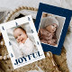 Feiern Sie die Saison mit dieser festlichen Weihnachtskarte aus dem Foto mit Ihrem vertikalen Foto gerahmt von eleganten, handgezeichnet Kiefern auf einem knusprigen weißen Hintergrund. Die kühne Seefahrt "Joyful" (Joyful) zeigt Ihnen unten Ihren personalisierten Urlaubsgruß und Familiennamen. Die Karte kehrt zurück, um ein zusätzliches Foto-Set vor einem koordinierenden Marinehintergrund mit subtilen weißen Punkten zu enthüllen, was es zu einem perfekten Weg macht, warme, festliche Wünsche zu teilen.