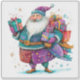 Dieser hübsche festliche Aufkleber ist mit einem fröhlichen, violett gekleideten Charakter, mit bunten Geschenken und einem warmen Lächeln geschmückt.