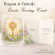 Easter greeting, Eucharistic devotion, and Resurrection hope are beautifully united in this traditional Catholic design.