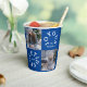 Joyous Yuletide paper cup with two family photos, family name and year. Photo templates via Pixabay licensed under CC0 and must be replaced with your own photos