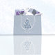 Das Joyoux Weihnachten Design in Pastellblau. Eine Geschenktasche mit silbernen Weihnachtsbäumen und einem Schneefall-Hintergrund. Entworfen mit Ihren Urlaubsgeschenken im Hinterkopf.