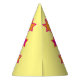 Helle Sternmuster fügen Ihr eigenes Foto hinzu und benennen Party Hut. Ideal für eine besondere Damenfeier zum 80. Geburtstag. Farbenfroh rosa, orange und gelb. Die Hintergrundfarbe kann auch für Ihre eigene Wahl geändert werden, aktuell gelb. Originelle Kunst und Design von Sarah Trett. www.sarahtrett.com für www.mylittleeden.com