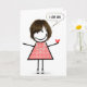 Ein niedliches Strichmännchen mit dunklem Haar, das ein Rot-Weiß-Gingham-Kleid trägt, Perlen und Sneakers zum Hochzeitstag. Alle Texte können geändert werden.