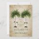 Ein jüdischer "Under the Chuppah" und Palmen Elegant Wedding Champagne. Zwei elegante Palmen bilden einen Teil des Baumkronenbodens Über die Braut und die Bräuche und das Hochzeitstag. Elegantes modernes formales Hochzeitsdesign. Die Informationen auf der Rückseite können leicht auf Ihre eigenen und Ihre eigenen Worte geändert werden. Das moderne Skript kann leicht für Ihre eigenen Informationen geändert werden. Eine maßgeschneiderte Hochzeitseinladung aus einer Suite von Hochzeitsstandort bei Just Fine Designs.