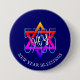 Moderne, stilvolle Rosh Hashanah 5785 Jüdische Neujahrsknöpfe mit CUSTOMIZABLE TEXT, mit einem farbenfrohen Star of David mit 5785 (Hebräisches Neujahr 2025) und dem Wort HEY in White Script Typografie. Der Hintergrund ist Mitternachtsblau. Am unteren Rand befindet sich der KUNDENBARE Text, der "Neujahrssegmente" enthält, den Sie durch eine PERSONALISIERTE Nachricht ersetzen oder Ihren Namen hinzufügen können. ALLE TEXTE SIND KUNDENBAR, sodass Sie dies für JEDES JAHR ändern können. Wählen Sie aus einer großen Auswahl an jüdischen Karten, Kleidung, Geschenken und Party von Berean Designs.