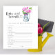 Feiern Sie mit diesem Aquarell von Blume! Baby in Blüte! Baby Dusche Party! Antworten: KREISE, KREUZEN, SCHNULLER, FLASCHE, NACHTLICHT, LULLABY, STROLLER, EPIDURAL, BURP, HOCHSTUHL, DIAPER BAG, SCHWIMMBAD