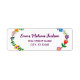 Stilvolles, modernes Adressetikett für eine Person (kann auch für eine Familie angepasst werden), mit einem Blumenmotiv an den links und rechten Kanten und einem eleganten, kursiven Handschrift für den Namen oder Familiennamen der Person.