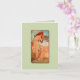 An der Vorderseite dieser schönen Karte, eine Reproduktion einer Alfons Mucha-Abbildung aus dem Höhepunkt der Jugendstil-Periode mit dem Titel "Sommer". Hellgrüner Hintergrund. Setzen Sie sich ein, um Ihre Texte zu drucken, oder passen Sie sie an, damit Ihre Wörter vorgedruckt werden können.