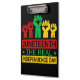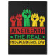 Soziale Gerechtigkeit und Schwarze Geschichte Wortart Design Features hob Fausten mit "Jüngster Tag - der wirkliche Unabhängigkeitstag" Text in Pan Africa Farben Combo auf schwarzem Hintergrund. Ändern Sie den Insider-Papiertyp von der Sketchbook-Seite auf die Seiten mit Regeln, Gittern oder sogar Rezepten