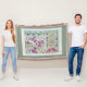 Eine Viktorianische, elegante Jugendstil-Collage mit floraler Textilkunst mit Dicken und Blättern. Weiß, grün, lila, gelb.
