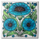 Diese Keramik ist im Jugendstil gehalten, mit blauen Blumen und grünen Blätter. Eine farbenfrohe Kachel, die als Dekoration oder als Untersetzer oder Trivet verwendet werden kann.