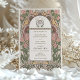 Genießen Sie die zeitlose Eleganz der Jugendstil-Ära mit dieser wunderschön gestalteten Hochzeitseinladung. Die Vorderseite der Einladung besteht aus einer harmonischen Mischung aus blütendem Rosa und schlaugrünen Blumenarrangements und umschließt ein Monogramm, das die Initialen des Paares elegant in einem goldenen Ton kombiniert. Auf der anderen Seite entfaltet die Einladung ein atemberaubendes Tableau aus Rose pink, olivgrün und erdigen Farbtönen, detailliert mit einem aufwändigen botanischen Design, das die wesentlichen Details des besonderen Tages umrahmt. Die Verwendung klassischer Jugendstil-Typografie und subtiler Goldakzente verleihen dieser Einladung eine Touch von Eleganz und Charme, die sich ideal für Paare eignet, die eine Mischung aus klassischer Kunst und moderner Finesse für ihre Hochzeitsankündigung suchen.