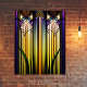 Dieses farbige Glasdesign ist ein Jugendstil-inspiriertes Muster, das aus einer komplexen, generativen Kunst besteht, die aus geometrischen Linien besteht, die symmetrische Muster erzeugen. Die Farben des Musters sind hell und lebendig und geben dem Design ein Gefühl von Tiefe und Dimensionalität. Dieses farbige Glasdesign, das mit modernster Technologie ausgeliefert wird, ist ein faszinierendes und schönes Staat.