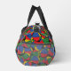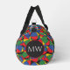Farbenfrohe Jonggler-Bälle gemusterte Duffeltasche, mit einem Monogramm-Bereich an einem Ende, um Ihre eigenen Initialen oder Text hinzufügen