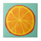 Grafische Abbildung eines realistischen Orangenschnittes mit einer minzigen grünen Keramik.